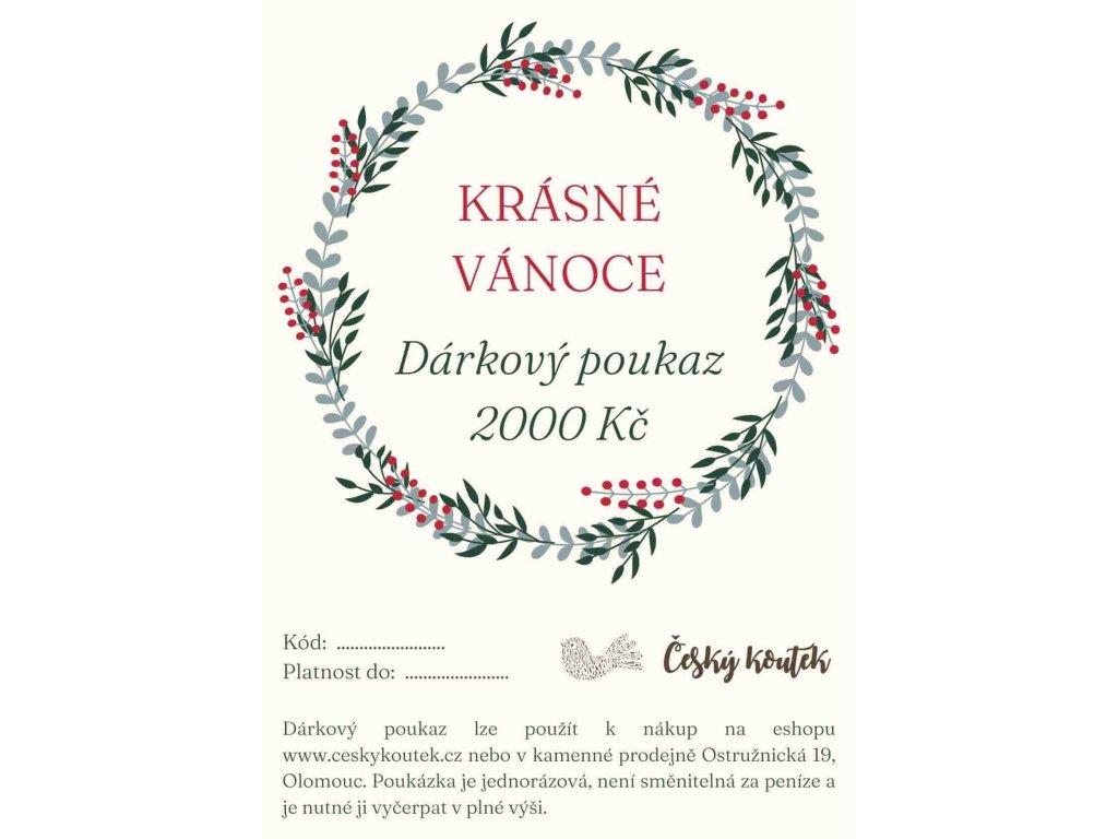 - Poukaz lze použít k nákup na eshopu www.ceskykoutek.cz nebo v kamenné prodejně Ostružnická 19, Olomouc.