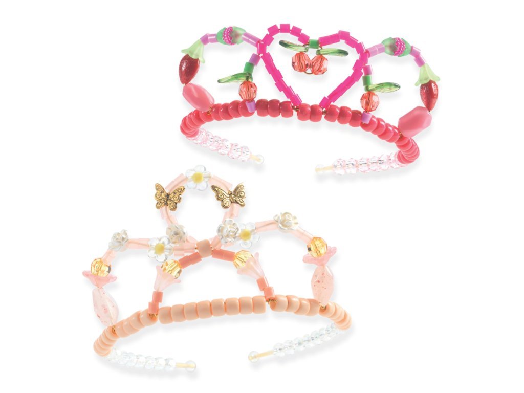 Děti si podle návodu vytvoří dvě krásné čelenky z růžových korálů.