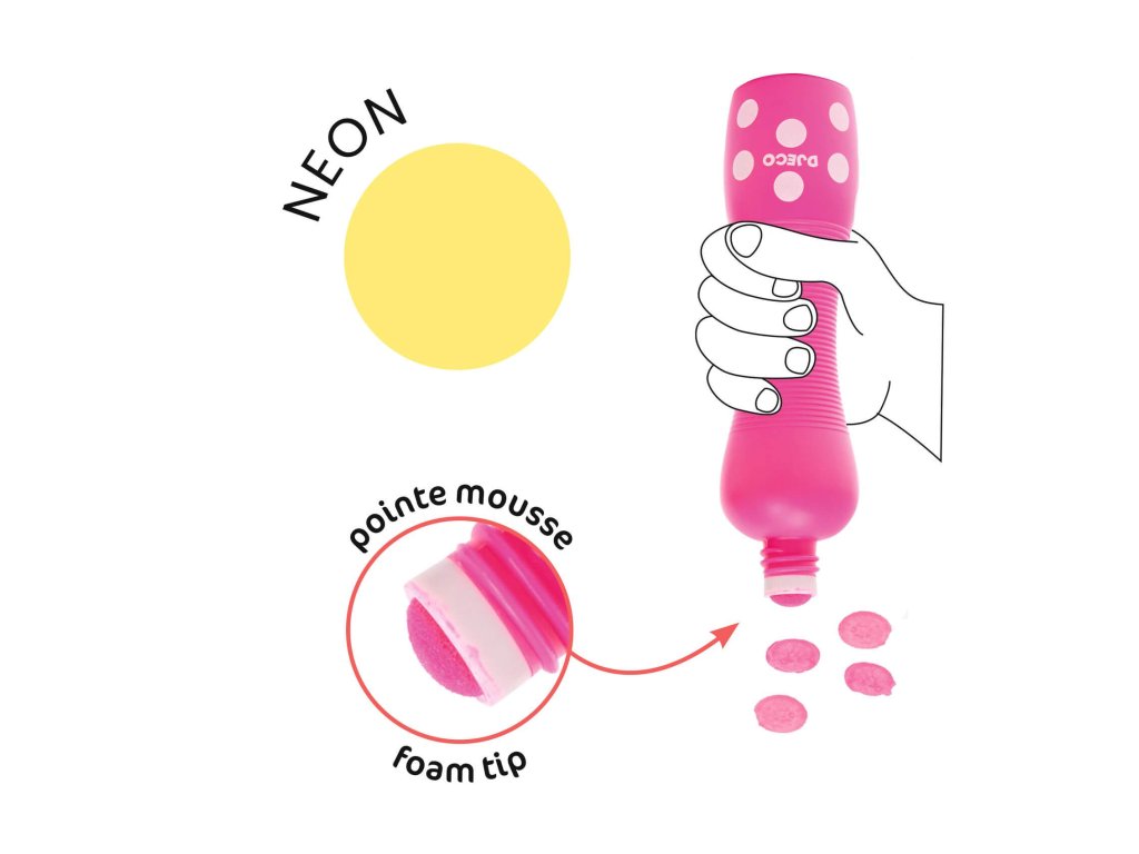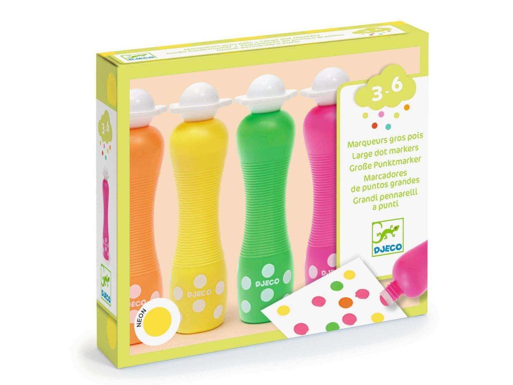 Djeco neonové dot markery / pěnové markery umožňují dětem připravit barevné tečky ve fluorescenčních křiklavých barvách.