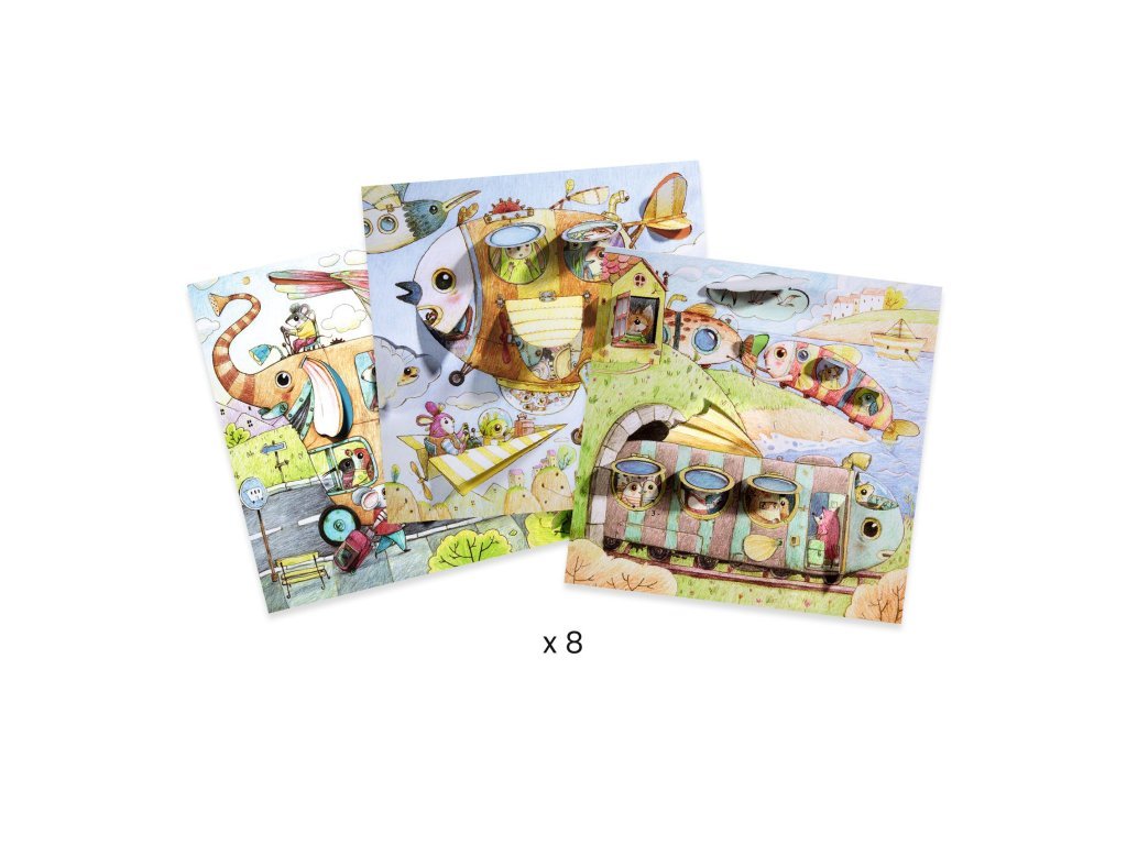 Sada obsahuje 8 obrázků (4 druhy obrázků vždy po 2 kusech) s motivy zvířátek o velikosti 20 x 20 cm.