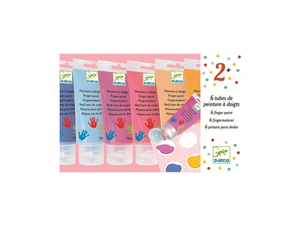 Djeco prstové barvy v tubě pro děti od 2 let.