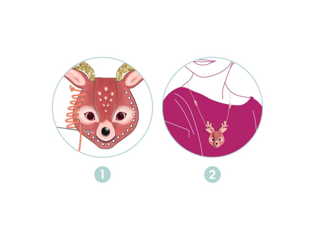 S kreativní sadou Djeco DIY Tajné náhrdelníky si děti vyrobí hned tři originální plstěné šperky. Každý náhrdelník si samy sešijí, zkompletují přidáním šňůrky a ozdobí korálky. Díky tomu je každý kousek jedinečný a plný fantazie.