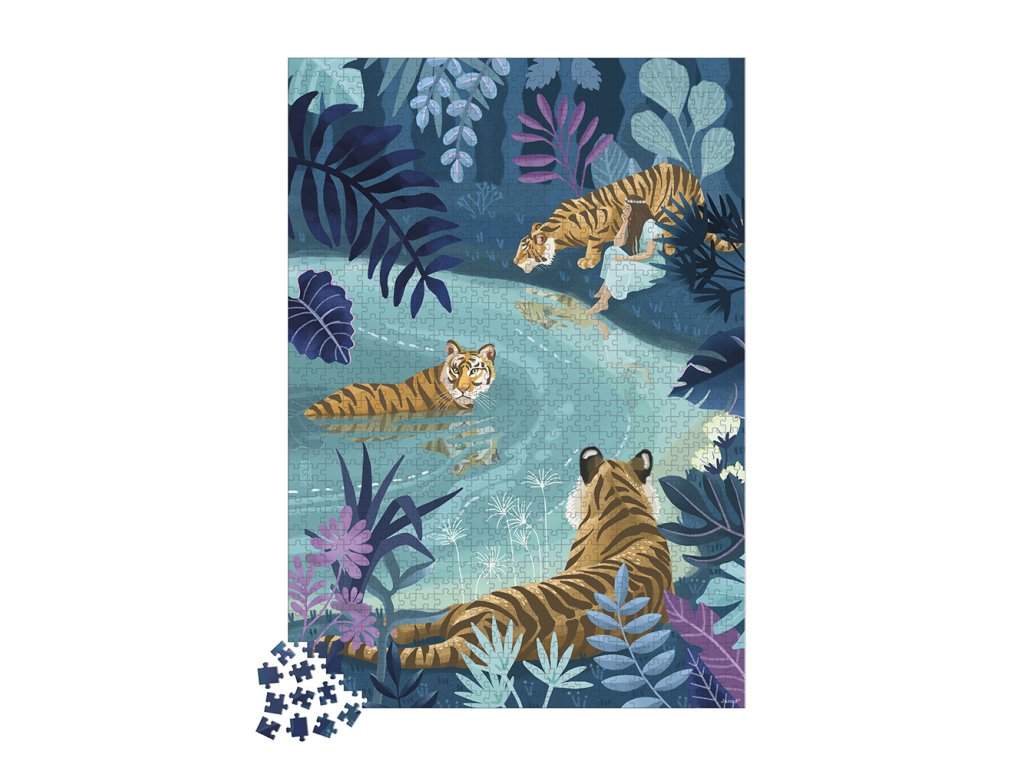 Krásně ilustrované puzzle s motivem tygrů v jezeře potěší větší děti i dospělé díky velkému počtu dílků.