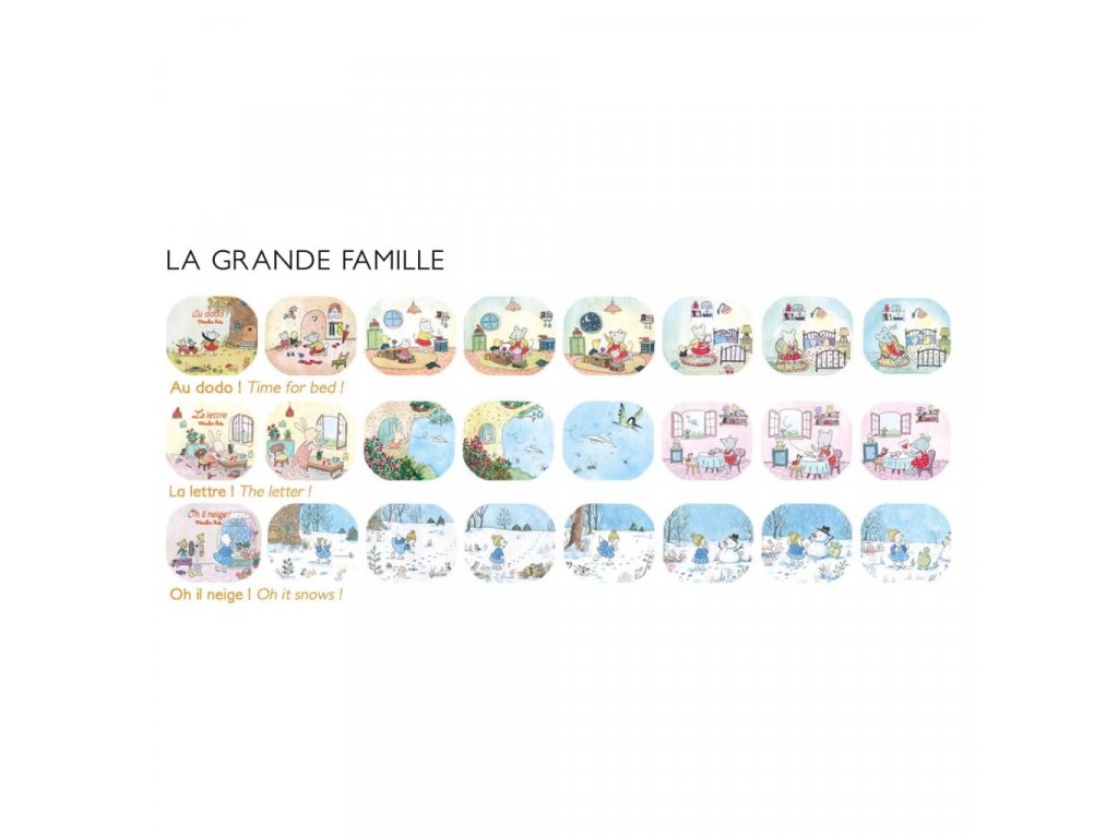 Djeco náhradní promítací kotoučky Velká rodina. V krabičce jsou uložena 3 kolečka a každé kolečko obsahuje jednu pohádku rozloženou do 8 promítacích obrázků.