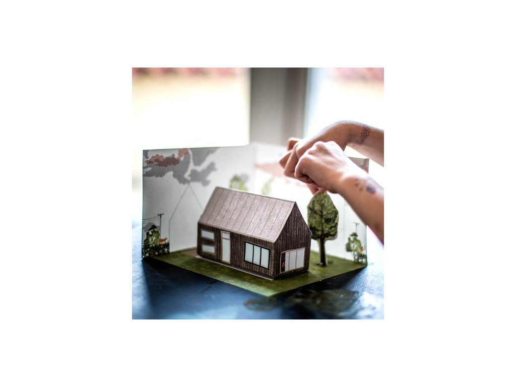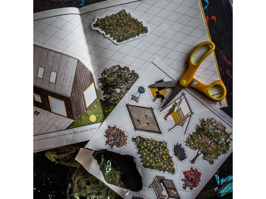 Díky šikovným prstíčkům si děti vystřihnou a slepí papírový model domečku se zahradou.